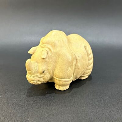 Tượng tử sa tê giác cỡ nhỏ nguyên khoáng đất cũ bày bàn trà đẹp TS66