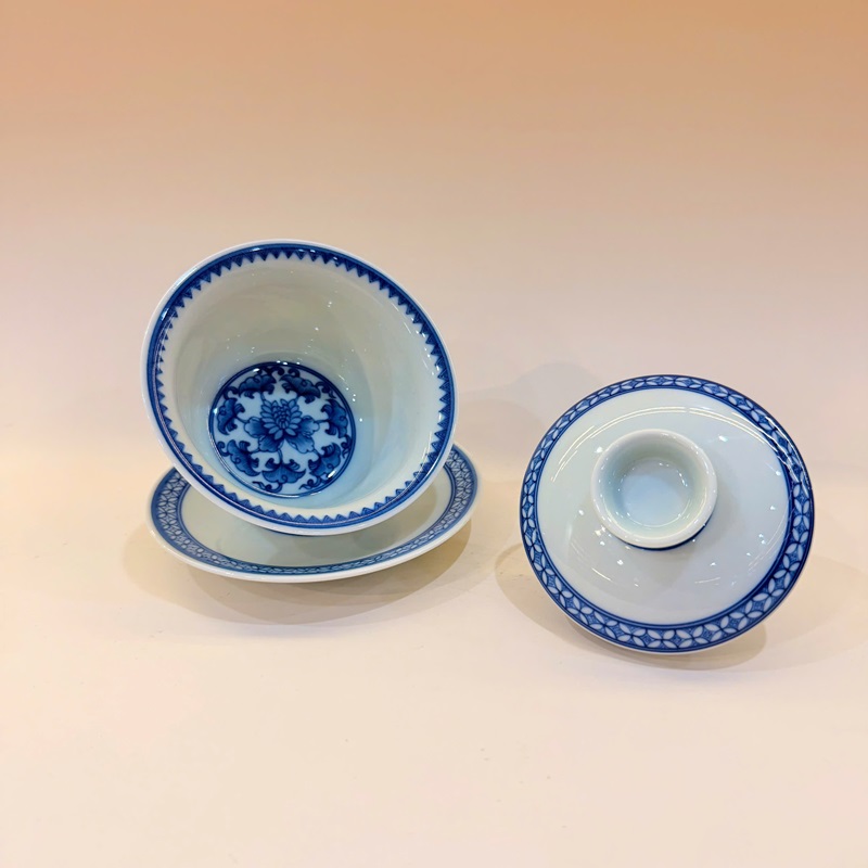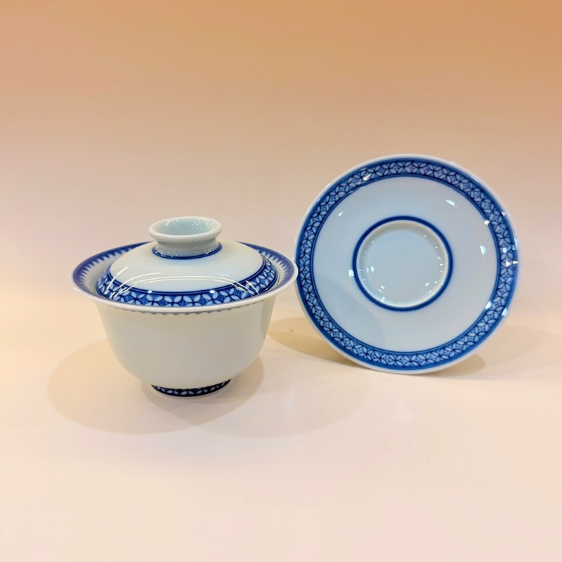 Tiềm trà sứ thanh hoa cảnh đức hoạ tiết viền hoa 160ml AS19