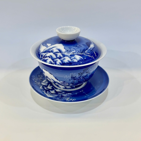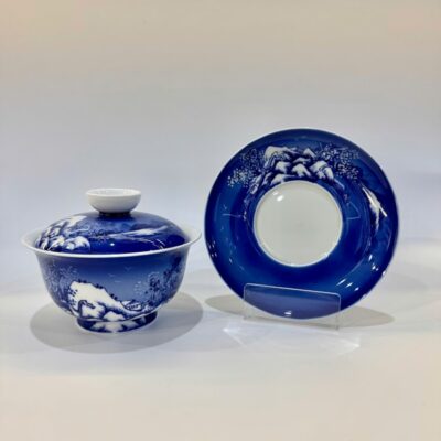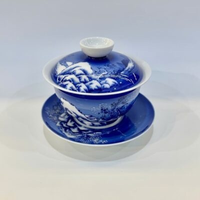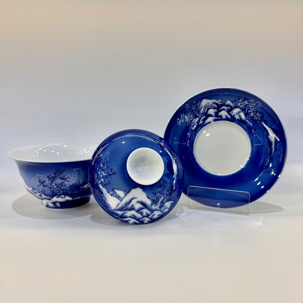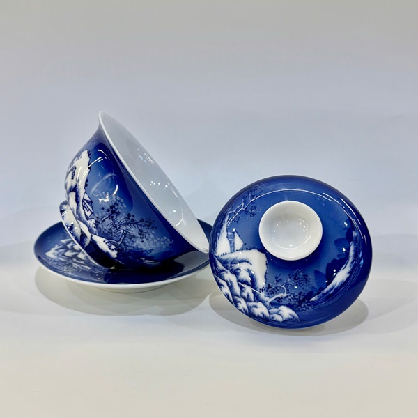 Đặt mua Tiềm trà sứ cảnh đức cao cấp vẽ tay mùa đông đẹp làm chén khải AS51-XANH