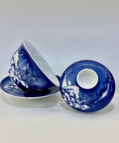 Tiềm trà sứ cảnh đức cao cấp vẽ tay mùa đông đẹp làm chén khải AS51-XANH