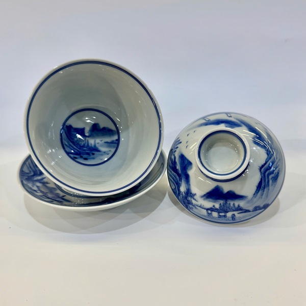 Tiềm trà sứ cảnh đức cao cấp vẽ tay sơn thủy làm chén khải 200ml AS30