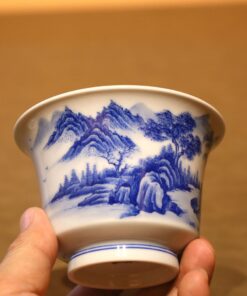 Tiềm Trà Sứ Cảnh Đức Dáng Cao Mục Phu Đọc Sách Sơn Thuỷ 140ml AS82