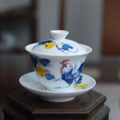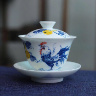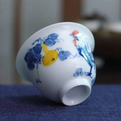 Tiềm trà sứ cảnh đức vẽ tay hình gà thủ công nhỏ mỏng đẹp 130ml AS06