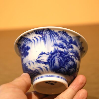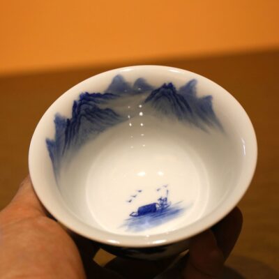 Đặt mua Tiềm Trà Sứ Cảnh Đức Vẽ Tay Sơn Thuỷ Lão Tùng cao cấp 150ml AS83