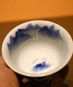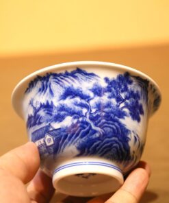 Tiềm Trà Sứ Cảnh Đức Vẽ Tay Sơn Thuỷ Lão Tùng cao cấp 150ml AS83