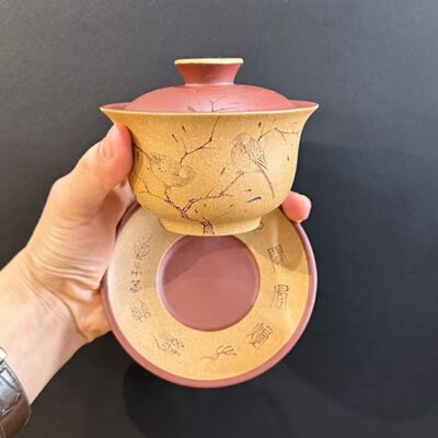 Tiềm trà tử sa nguyên khoáng đất cũ thủ công khắc chim đẹp 200ml AS34