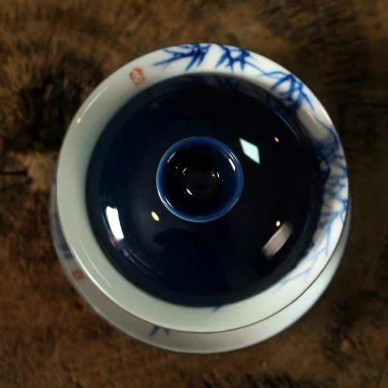 Đặt mua Tiềm Trà Sứ Cảnh Đức Xanh Ngoài Vẽ Trúc Lòng 180ml AS143
