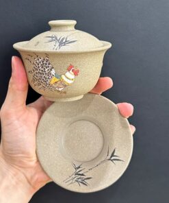 Tiềm trà tử sa cao cấp đất cũ đắp nổi gà thủ công chén khải 180ml AS32