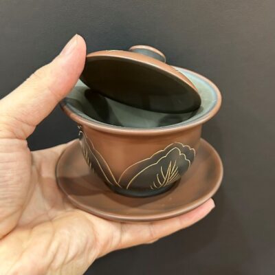 Tiềm trà tử sa nê hưng làm chén khải pha trà cỡ nhỏ đẹp 150ml họa tiết hoa sen.