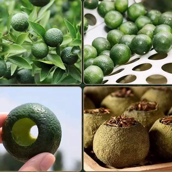 – Cam trồng tại vùng Tân Hội, Giang Môn, Quảng Đông. hái từ những cây 7 năm tuổi, là độ tuổi cây phát triển tốt nhất, quả thơm, nhiều tinh dầu, giúp vị trà thêm nồng đậm