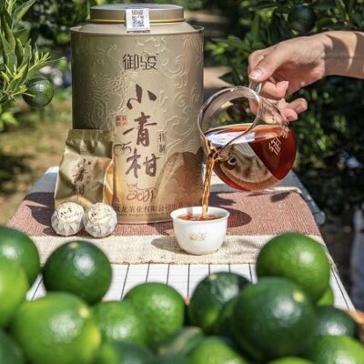 Tiểu thanh cam là viết tắt của trà phổ nhĩ tiểu thanh cam, thuộc loại trà quýt phổ nhĩ. Nguyên liệu của trà này là quả quýt xanh chưa chín từ Tân Hội. Sau khi lấy quả bỏ thịt quả rồi nhồi trà phổ nhĩ chín từ Vân Nam vào trong. Các công đoạn rửa quả, sấy khô, cắt nắp, lấy thịt quả, phơi khô, cho trà vào và phơi lại nhiều lần để hoàn thành.