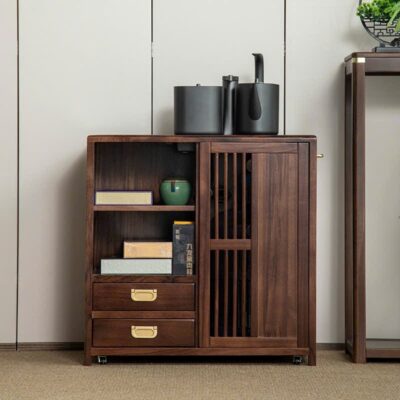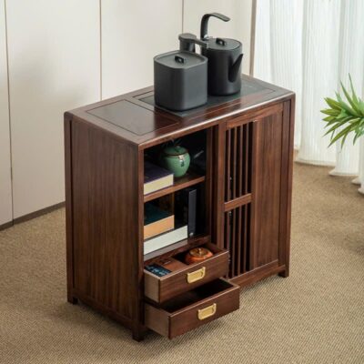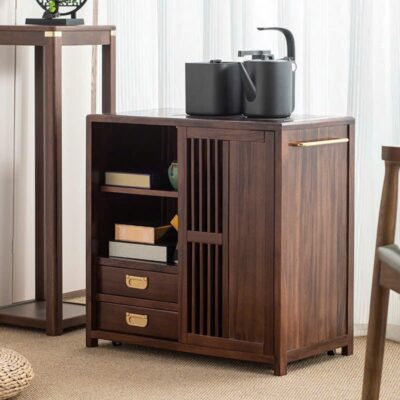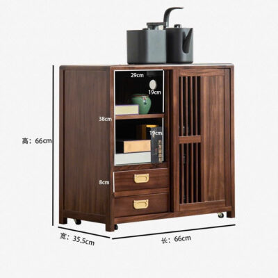 Tủ Trà Di Động Gỗ Mun Sọc 2 Ngăn Kín Cao 66x66x35.5cm BT12