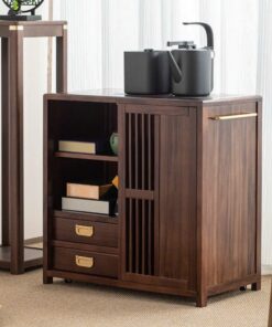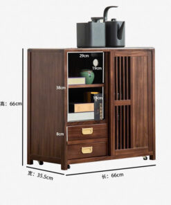 Tủ Trà Di Động Gỗ Mun Sọc 2 Ngăn Kín Cao 66x66x35.5cm BT12