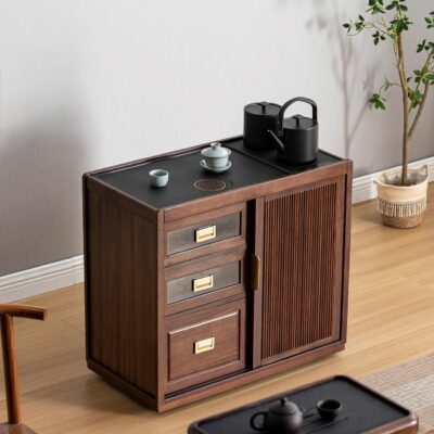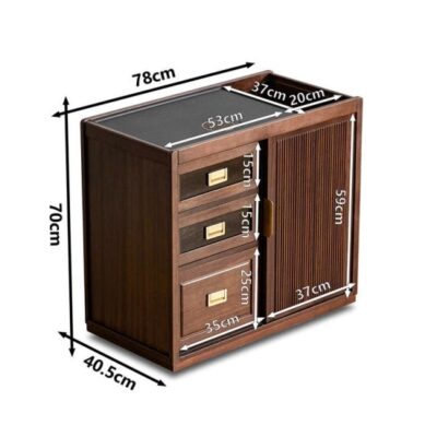 Tủ Trà Di Động Gỗ Óc Chó Mặt Đá 3 Ngăn Kín Cao 70x78x41cm BT18
