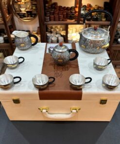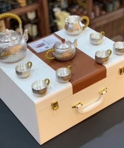 Bộ ấm pha trà bạc cao cấp nguyên chất an cư lạc nghiệp đẹp AB87