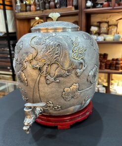Bình đựng nước bằng bạc nguyên chất 999 gò tay long phụng đẹp 15L BN10