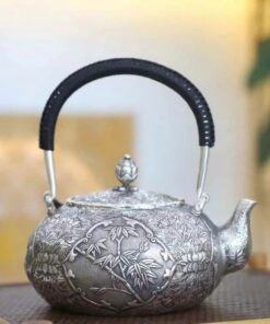 Ấm trà bạc nguyên chất 999 pha trà ngon gò tay thủ công đẹp 216g AB92