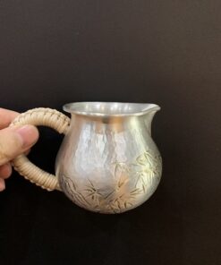 Chuyên trà bạc nguyên chất 999 gò tay thủ công khắc trúc đẹp 220ml CT89