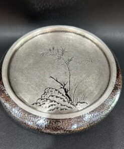 Khay trà bạc nguyên chất 999 bày ấm chén dáng tròn trúc đẹp KB01