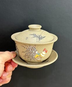 Tiềm trà tử sa cao cấp đất cũ đắp nổi gà thủ công chén khải 180ml AS32