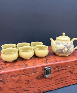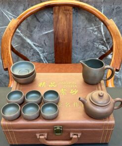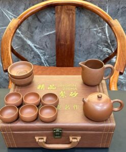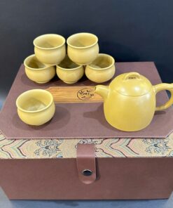 Bộ ấm trà tử sa nê hưng cao cấp thủ công vàng hộp gỗ đẹp AT80