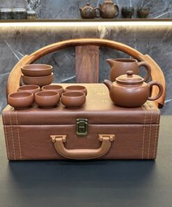 Bộ ấm trà tử sa cao cấp nê hưng tây thi thủ công có hộp da đẹp AT72