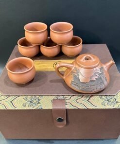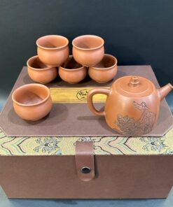 Bộ ấm trà tử sa cao cấp nê hưng hỏa biến bát nhã kinh có hộp đẹp AT98