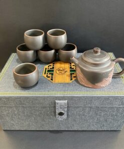 Bộ Ấm Trà Cối Xay Sứ Cảnh Đức Lòng Đen AT01