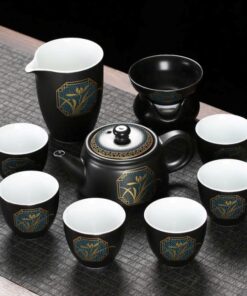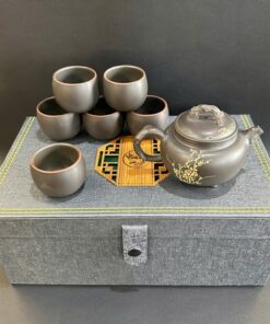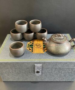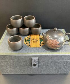 Bộ ấm trà tây thi lá đề cao cấp kèm 6 ly uống trà hộp đẹp AT17