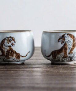 Chén cảnh đức gốm thái hội vẽ tay hổ quay đầu thủ công 80ml CS42