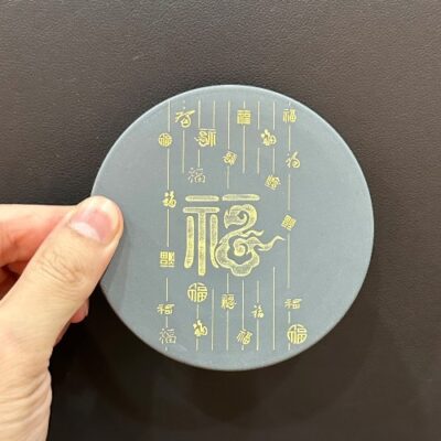 Lót chén trà đất tử sa dáng tròn khắc chữ thủ công đẹp 9.5cm LC58
