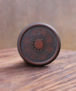 Đế chén trà tử sa dáng tròn khắc họa tiết trống đồng thủ công LC50